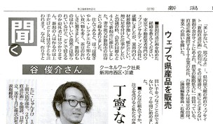 2018年8月11日 新潟日報 オピニオン面「聞く」にて、当社代表 谷のインタビュー記事を掲載頂きました。 2018年8月現在、通販サイト「新潟直送計画」では、約... -