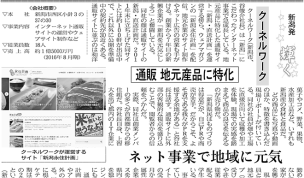 2019年9月6日 日本経済新聞(新潟経済面)にて、スタートアップによる産直支援サービスの一つとして、株式会社クーネルワークが運営する新潟最大規模の産直サイト「新潟直送計画」を取り... -