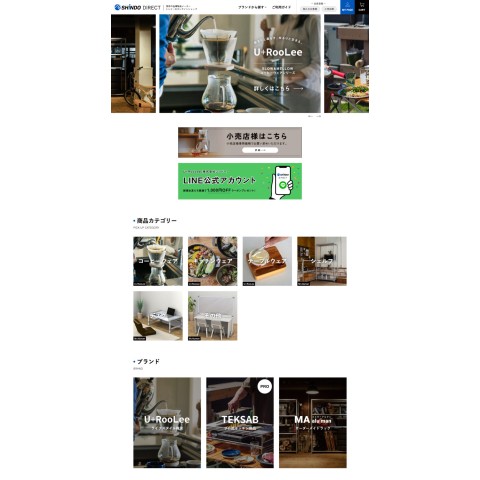 今回のプロジェクトでは、ブランドサイトを別途立ち上げる提案をしていたため、通販機能を持つサイトも統合し、名称を「SHINDO DIRECT(シンドーダイレクト)」にする提案をいたしました。SHINDO DIRECTには、メーカー直販であることと、複数あるブランド名にとらわれない、株式会社シンドー様の想いとプロダクトを直接届ける、という意味が込められています。